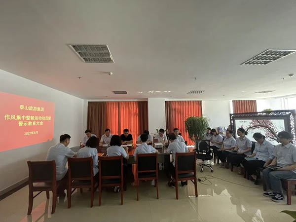 按照文旅集團(tuán)要求部署,8月4日下午集團(tuán)組織機(jī)關(guān)全體人員召開作風(fēng)集中整頓活動(dòng)動(dòng)員暨警示教育大會(huì)。會(huì)議由集團(tuán)黨委副書記劉印強(qiáng)傳達(dá)了《泰山文旅集團(tuán)機(jī)關(guān)作風(fēng)集中整頓活動(dòng)實(shí)施方案》、宣讀了《泰安泰山旅游集團(tuán)有限公司黨委作風(fēng)集中整頓活動(dòng)實(shí)施方案》。