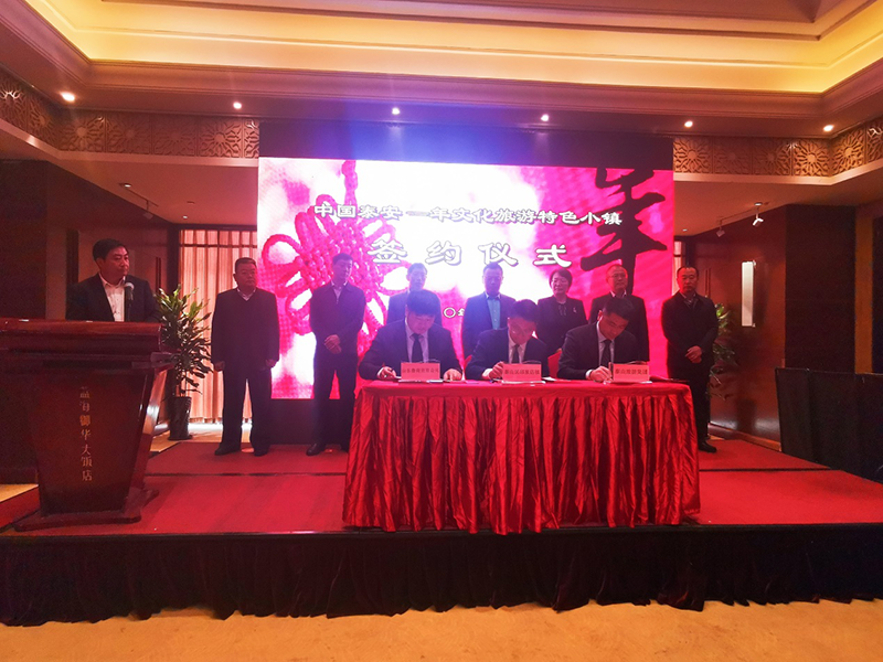 青旅國際旅游投資有限公司副總裁、山東魯商青旅文化旅游有限公司總經(jīng)理范而剛,泰山旅游集團(tuán)黨委書記、董事長(zhǎng)張劍,泰山區(qū)邱家店鎮(zhèn)鎮(zhèn)長(zhǎng)尹凱上臺(tái)簽訂泰安年文化旅游小鎮(zhèn)項(xiàng)目商務(wù)合同。