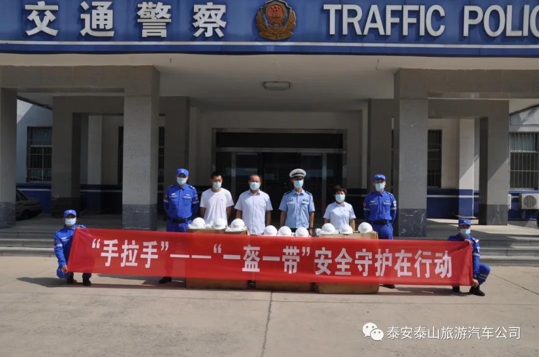 文明交通是文明城市的標志,也是廣大市民幸福生活的和諧音符。為深化“一盔一帶”安全守護行動,提高廣大交通參與者交通安全意識和責任感,進一步筑牢道路交通安全防線,泰安旅汽與泰安市交警城東大隊聯(lián)合舉辦“手拉手”—“一盔一帶”安全守護在行動主題活動。泰安旅汽作為泰安市交通運輸行業(yè)的排頭兵,主動擔當作為,倡導公益,傳播正能量,為泰安市公益性社會組織泰山藍天救援隊和泰安藍峰救援隊發(fā)放愛心頭盔,關(guān)心救援隊員安全出行,獻上一份愛心。