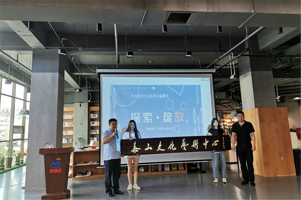 8月3日上午, 藝術(shù)走向大眾系列公益展——“探索·綻放”暨泰山文化藝術(shù)中心揭牌儀式在泰山三里屯文商旅綜合體安嶼書店舉行, 此次“探索·綻放”公益展由泰安美協(xié)、泰山旅游集團、美院星美術(shù)館、泰山文化傳播公司、泰山三里屯商業(yè)管理有限公司共同舉辦。