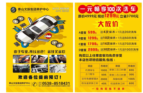 泰山文旅集團養(yǎng)護(hù)中心一期已全面啟動運營,主要服務(wù)于汽車潤滑與養(yǎng)護(hù)、機油、防凍液、潤滑油、輪胎、電瓶等其他養(yǎng)護(hù)零部件的更換;座椅座套、腳墊、貼膜等裝飾用品;汽車精洗、打蠟拋光等汽車美容服務(wù)。