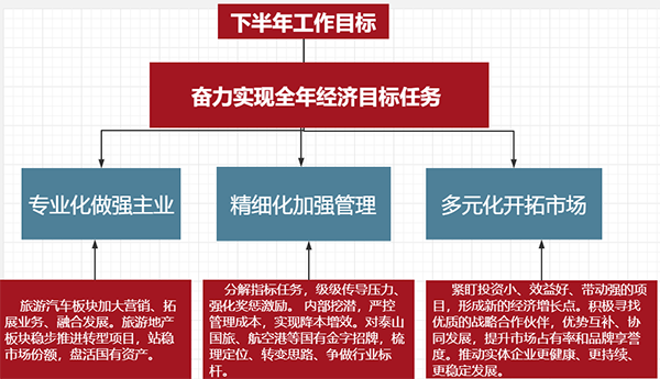 開源節(jié)流,精細化加強管理。層層分解任務、級級傳導壓。力、強化獎懲激勵,形成干部能上能下、職工能進能出、收入能增能減的良性機制,充分激發(fā)企業(yè)活力。通過科學謀劃、內部挖潛,嚴控管理成本、費用支出,實現降本增效。對泰山國旅、航空港等國有金字招牌,重新梳理定位、對標學習提升、推動管理變革。