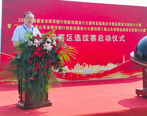 8月13日,2022首屆泰安市研學(xué)旅行創(chuàng)新線路設(shè)計(jì)大賽和首屆泰安市精品旅游文創(chuàng)設(shè)計(jì)大賽暨“2022第三屆山東省研學(xué)旅行創(chuàng)新線路設(shè)計(jì)大賽和第三屆山東省精品旅游文創(chuàng)設(shè)計(jì)大賽”泰安賽區(qū)選拔賽啟動(dòng)儀式在泰山桃花源舉行。