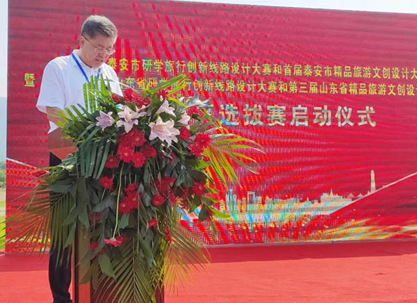 郭德文在致辭中表示,本次大賽既是我市精品旅游事業(yè)的開山之作,也是泰安文旅行業(yè)的創(chuàng)新之舉。中國文旅產(chǎn)業(yè)已經(jīng)步入新的歷史發(fā)展機(jī)遇期和戰(zhàn)略調(diào)整期,要以前瞻性、開放性和綜合性思維主動(dòng)適應(yīng)未來形勢(shì)。希望廣大研學(xué)旅游、文創(chuàng)工作者深入挖掘泰安優(yōu)秀文化元素,激發(fā)文化傳承創(chuàng)新活力,推出一批創(chuàng)新性、創(chuàng)意性、實(shí)用性強(qiáng)的研學(xué)線路、文創(chuàng)產(chǎn)品,用優(yōu)秀的作品、優(yōu)異的成績,擦亮“好客山東”靚麗名片,引領(lǐng)和推動(dòng)我市精品旅游產(chǎn)業(yè)創(chuàng)新發(fā)展。