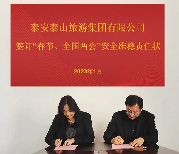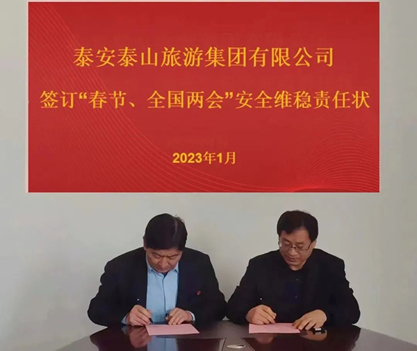 為保證2023年春節(jié)及“全國兩會”期間平穩(wěn)有序的安全穩(wěn)定形勢,旅游集團壓實主體責任,細化目標任務,于近期舉行了“春節(jié)、全國兩會責任狀”簽訂儀式。