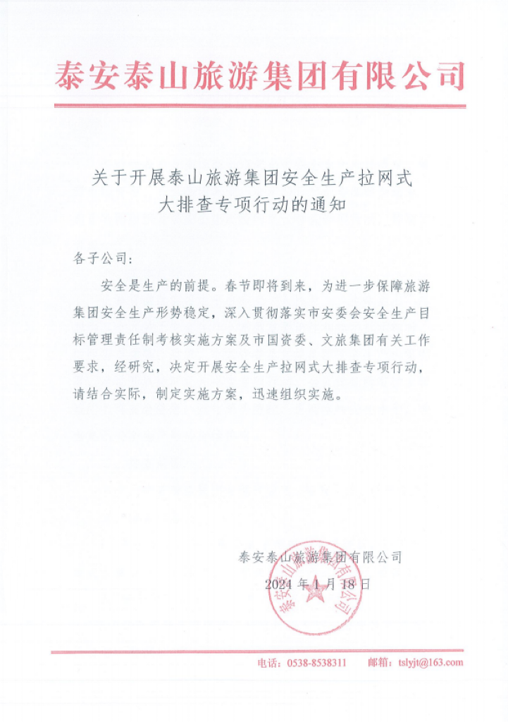 春節(jié)即將到來(lái),為切實(shí)做好2024年春節(jié)期間安全防范工作,旅游集團(tuán)開(kāi)展為期三天的安全生產(chǎn)拉網(wǎng)式大排查專項(xiàng)行動(dòng),共檢查15家企業(yè)。各子公司安全管理人員參加本次活動(dòng)。