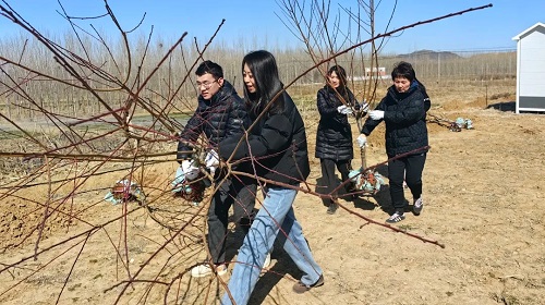 植樹勞動現(xiàn)場,大家相互配合,每個環(huán)節(jié)都井然有序,將桃樹、連翹、葡萄樹苗栽種在春天的泥土里,用實際行動增加集團桃花源項目生態(tài)建設(shè)的“含綠量”。植下的是樹木,孕育的是集團桃花源鄉(xiāng)村振興項目的綠色發(fā)展動能,讓大家心里騰升“綠色的希望”。經(jīng)過大家的共同努力,共植下桃樹、連翹、葡萄等樹苗120余株。