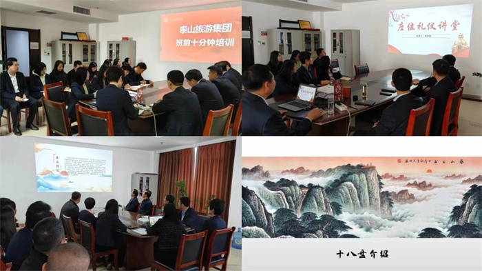 按照泰山文旅集團部署要求,泰安泰山旅游集團立足“文化” 和“旅游”內(nèi)涵,持續(xù)開展“班前十分鐘”培訓,圍繞泰山文化、專業(yè)技能、服務禮儀等知識進行交流學習,努力營造人人學習、時時學習、處處學習的良好氛圍,推進學習型、實干型、創(chuàng)新型國企建設。