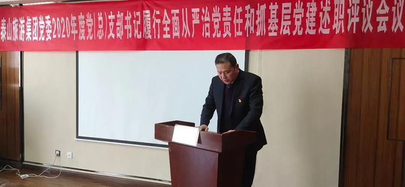 2月4日上午,泰山旅游集團黨委2020年度黨(總)支部書記履行全面從嚴治黨責任和抓基層黨建述職評議會議召開。市國資委二級調研員唐衍剛、人事科一級科員胡連福專程到會指導,集團黨委書記、董事長、總經(jīng)理張劍主持會議并講話。集團黨委所屬黨(總)支部書記、黨建科室負責人、集團黨委班子成員23人參加會議。