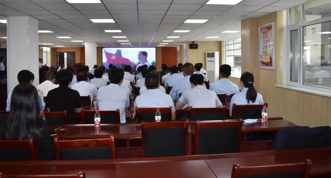 參與活動(dòng)全體黨員共同觀看集團(tuán)自制黨課視頻——“五代黨員”。